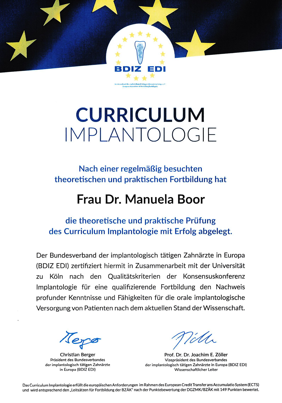 Erlangung der Fachzahnarztbezeichung für Oralchirurgie - 06/2012 – 03/2013